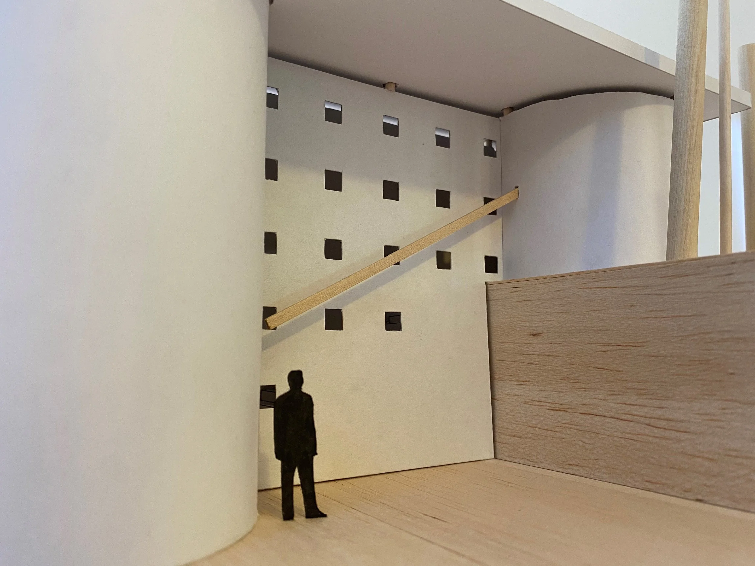 The inspiration for this project was film photography. My experience with this medium has made me slow down and go through a series of steps to create each shot. This was translated into a structure that takes a person on a winding path that gives them selected views of the board.