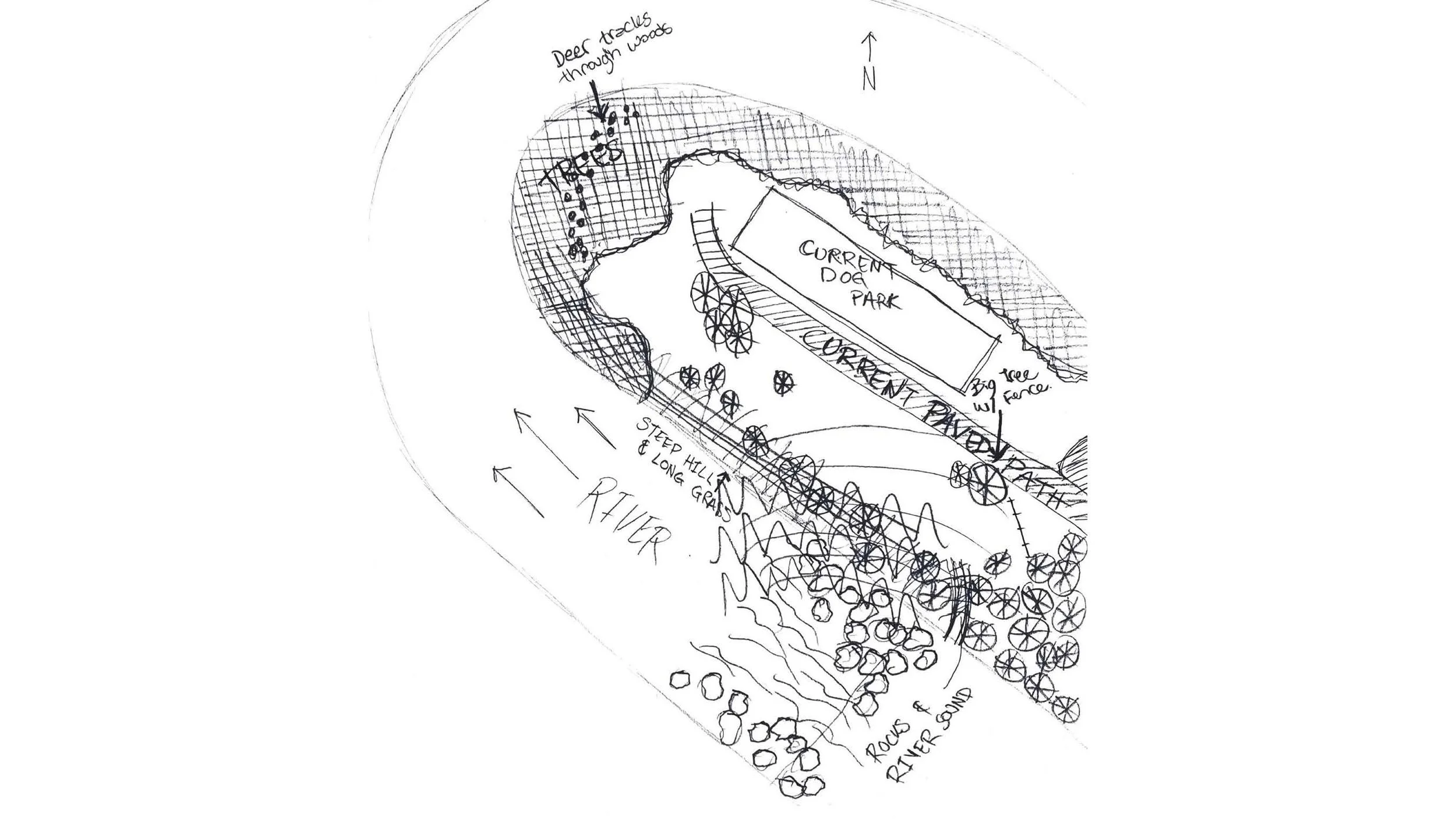 A sketch started during initial visit, along with observations made walking throughout the site.